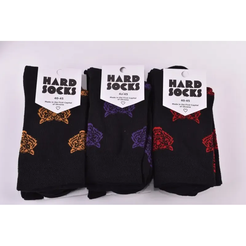 Чоловічі бавовняні шкарпетки з малюнком гарної якості. Колір ― На фото Розмір ― Універсальний (тягнуться від 40 до 45 розміру) Кількість виробів в упаковці ― 12 пар (одного розміру) Склад ― 80% Cotton, 17% Polyamide, 3% Elastane Виробництво ― Україна