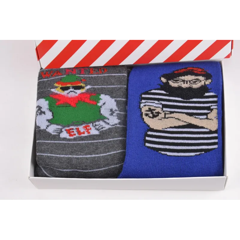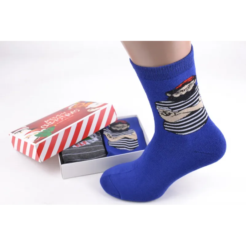 Оригинальные праздничные мужские махровые носки "Merry Christmas" в подарочной упаковке станут отличным подарком для самых близких. В коробке две пары носков с рисунком хорошего качества, разных расцветок. Цвет -- На фото Размер — Универсальный (тянутся от 41 до 47 размера) Количество изделий в упаковке ― 2 пары (одного размера, двух расцветок) Состав -- 85% Хлопок, 10% Полиамид, 5% Лайкра Производство ― Китай