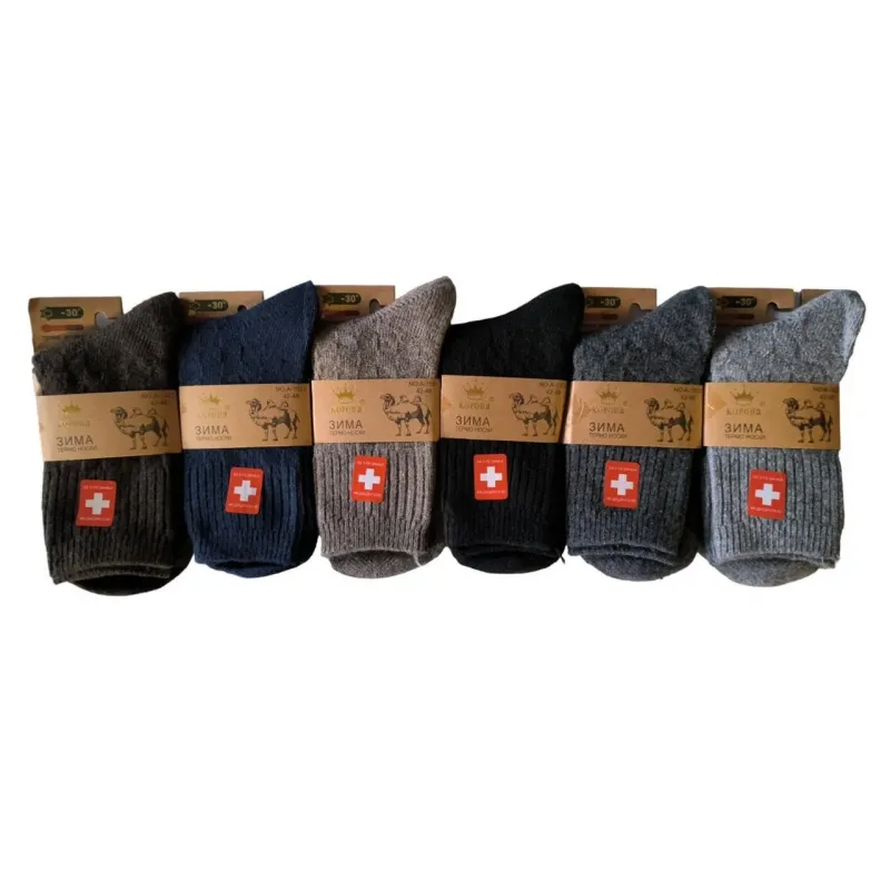 Чоловічі шкарпетки з верблюжої вовни Інформація, вказана на бирці: Термошкарпетки для спорту, туризму та активного відпочинку з верблюжої вовни з антибактеріальними і термопідтримувальними властивостями розмір 42-48 Склад 70% верблюжа вовна 20% бамбук 5% поліамід 5% еластан