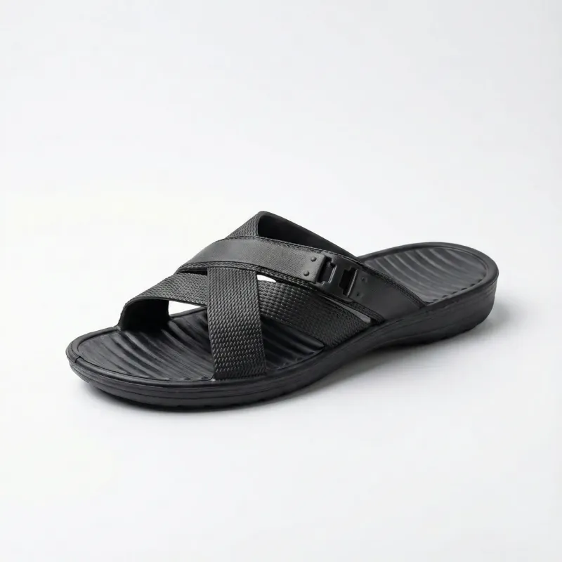 Практичні та зручні чоловічі шльопанці з матеріалу ЕВА (піна) — універсальне взуття для літнього сезону. Ця модель ідеально підходить для пляжу, басейну, сауни, душу або просто для повсякденного носіння вдома та на дачі. Шльопанці виготовлені з цільнолитої піни, що робить їх неймовірно легкими та міцними. Матеріал не вбирає воду, не гниє, легко миється і миттєво сохне. Дизайн з широкими перехресними ремінцями надійно фіксує стопу, не натираючи шкіру. Фактурна устілка запобігає ковзанню мокрої ноги всередині взуття. Чорний колір є найбільш практичним та немарким варіантом для чоловічого взуття. Характеристики: Сезон: Літо / Цілорічно (для басейну/дому) Матеріал: Піна ЕВА (водостійка) Тип: Шльопанці / Сланці Дизайн: Перехресні ремінці (навхрест) Колір: Чорний Країна виробник: Україна Розміри в наявності: 40, 41, 42, 43, 44, 45, 46