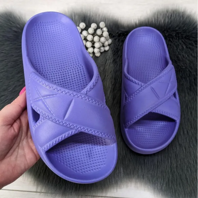 Яскраві та неймовірно зручні жіночі шльопанці від української фабрики Dago Style у ніжному фіолетовому (бузковому) кольорі. Ця модель з трендовим дизайном "навхрест" стане вашим улюбленим взуттям цього літа. Вони ідеально підходять для пляжного відпочинку, прогулянок містом, відвідування басейну або як комфортне та стильне домашнє взуття. Шльопанці виготовлені з сучасного матеріалу ЕВА (піна), що робить їх практично невагомими на нозі. Масивна підошва-платформа не лише додає кілька сантиметрів зросту, але й забезпечує чудову амортизацію при ходьбі, згладжуючи нерівності поверхні. Текстурована устілка з масажним ефектом запобігає ковзанню стопи, навіть якщо взуття мокре. Модель повністю вологостійка, гіпоалергенна та дуже проста у догляді — будь-які забруднення легко змиваються водою. Широкі лямки м'яко охоплюють ногу, не натираючи шкіру, що гарантує комфорт протягом усього дня. Характеристики: Матеріал: Піна ЕВА (EVA) Колір: Фіолетовий (Бузковий) Виробник: Dago Style Сезон: Літо / Цілорічно (басейн, дім) Стать: Жіночі Розміри в наявності: 37, 38, 39, 40, 41 Країна виробник: Україна