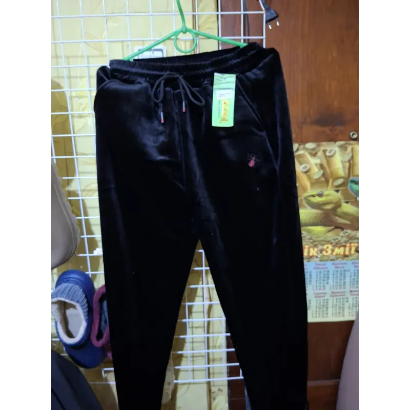 Розкішні та неймовірно комфортні жіночі велюрові штани турецького виробництва — ідеальний вибір для тих, хто цінує затишок та якість. Ця модель у великих розмірах (52, 54, 56) чудово сідає на пишні форми, не сковуючи рухів. Штани пошиті з високоякісного мармурового велюру (оксамиту), який має благородний перелив на світлі, дуже м'який на дотик і приємний до тіла. Тканина еластична, гарно тягнеться, але при цьому зберігає форму і не витягується на колінах. Пояс на широкій еластичній гумці додатково регулюється шнурком, що дозволяє зафіксувати зручну посадку на талії. Модель прикрашена акуратним мінімалістичним логотипом збоку. Це універсальний варіант: штани підійдуть як стильний домашній одяг, так і для прогулянок на вулиці у прохолодну погоду. Характеристики: Виробник: Туреччина (SUNA Fashion) Матеріал: Велюр / Оксамит (м'який, еластичний) Колір: Чорний (з переливом) Пояс: Резинка + шнурок Розміри: 52, 54, 56 (Батал) Сезон: Осінь / Весна / Зима (для дому)