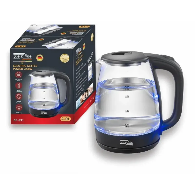 Скляний електрочайник з підсвічуванням Zepline ZP-991 (2 л) (2200 Вт)