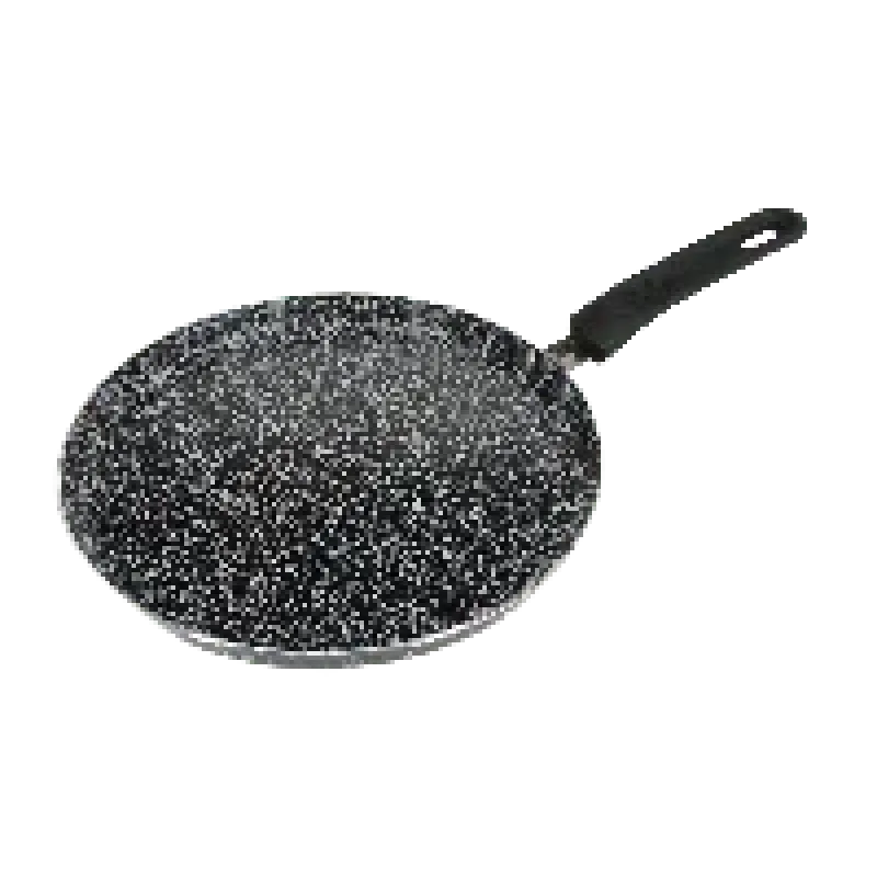 виконана з високоякісного литого алюмінію з мармуровим антипригарним покриттям, підходить для всіх видів плит, у тому числі для індукційних. Потовщене дно швидко та рівномірно нагрівається, добре утримує температуру. Якісне антипригарне покриття, що не містить шкідливих речовин і яке завдяки його складу легко чистити. А ще дуже зручно на такій плоскій сковороді готувати яєчню, омлет, грінки та гарячі бутерброди.