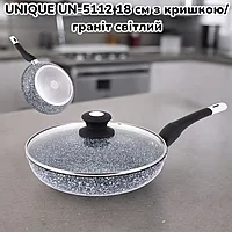 Сковорода UNIQUE UN-5112-18 з кришкою/граніт світлий