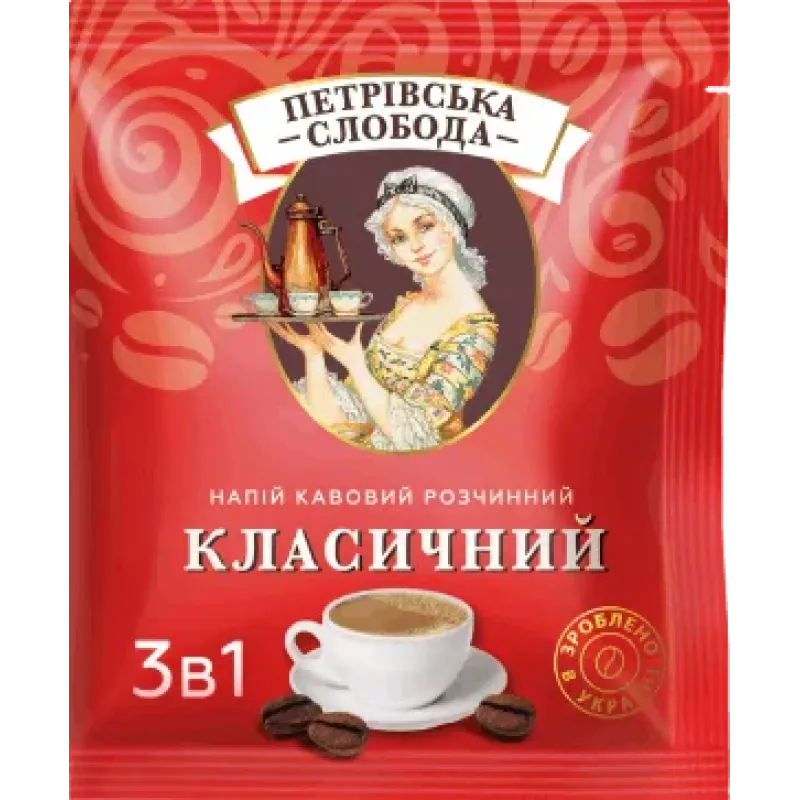 **Кавовий напій "Петрівська Слобода" Класичний 3в1** – це ідеальне поєднання традиційного кавового смаку та максимальної зручності, що робить його незамінним для швидких та приємних кавових пауз.