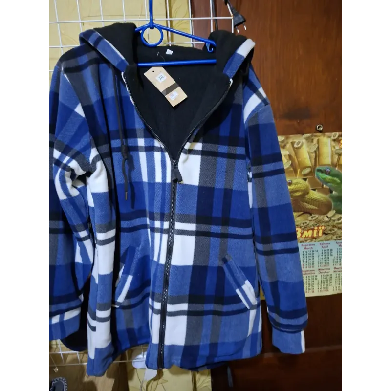 Зустрічайте ідеальний варіант для затишної зими та прохолодної осені — жіноча тепла сорочка на хутрі в стильному синьому кольорі в клітинку. Ця модель поєднує в собі стиль класичної картатої сорочки та комфорт теплої домашньої кофти або легкої куртки. Виріб повністю утеплений м'яким та густим штучним хутром (типу "овчина") зсередини, включаючи капюшон, що забезпечує максимальне збереження тепла. Зручна застібка-блискавка дозволяє швидко одягати та знімати сорочку, а глибокий капюшон захистить від вітру. Модель має практичні кишені та манжети на рукавах для додаткового комфорту. Ця сорочка універсальна: носіть її як верхній одяг у суху погоду, як теплий кардиган в офісі або як найзатишніший домашній одяг. Приємна на дотик тканина та вільний крій не сковують рухів і пасують до будь-якої фігури. Характеристики: Матеріал верху: Щільна байка / Текстиль (бавовна з домішками) Утеплювач: Штучне хутро (по тілу та в капюшоні) Колір: Синій в клітинку (Білий/Чорний/Синій) Застібка: Блискавка Особливості: З капюшоном, кишені Розміри в наявності: 46, 48, 50, 52, 54 Сезон: Зима / Холодна осінь-весна
