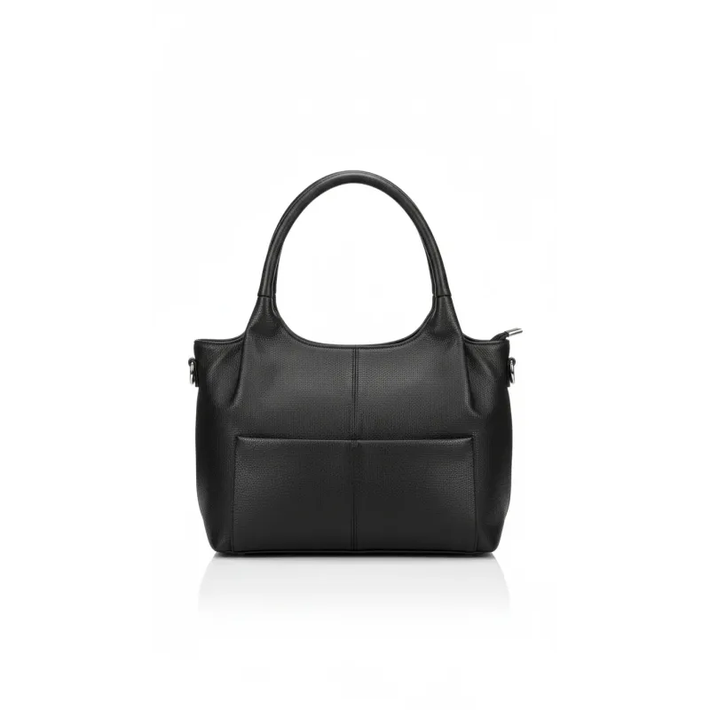 Елегантна жіноча сумка, що ідеально підходить для щоденного використання та офісного стилю. Модель виконана у м'якій напівкруглій формі (хобо/тоут) з високоякісної **текстурованої екошкіри** (або натуральної шкіри). Універсальний чорний колір та лаконічний дизайн дозволяють легко поєднувати її з будь-яким гардеробом.