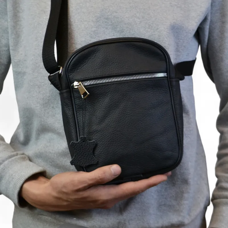 Сумка из натуральной кожи мужская, мессенджер кожаный чёрный, качество, мужская сумка через плече