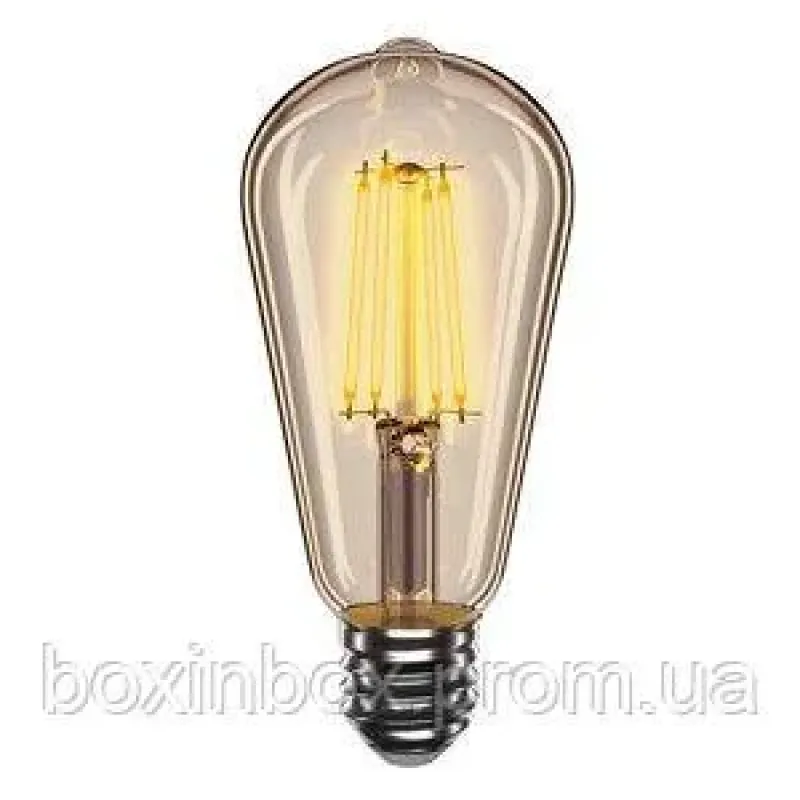 Світлодіодна філаментна лампа ETRON Filament ST64 7W E27 2700K золотоСвітлодіодна філаментна лампа ETRON ST64 7W E27 2700K золото призначена для внутрішнього освітлення житлових приміщень та використання в освітлювальних приладах з відповідним ступенем захисту на вулиці. Лампи виготовлені за новітньою технологією світлодіодних ниток (LED Filament), що забезпечує високу енергоефективність (100Lm/W). Ці лампи створюють відмінний світловий потік і за функціональністю не поступаються іншим світлодіодним моделям. Перевагою даної моделі є її висока енергоефективність за низького тепловиділення. Технічні характеристики філаментних ламп значно прогресивніші: вони створюють більший світловий потік при менших енерговитратах та тривалому терміні служби.