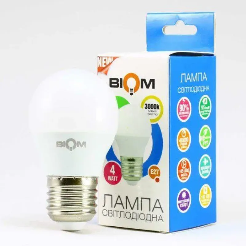 Світлодіодна лампа Biom BT-543 тепле світло 3000К 4 Вт G45 E27