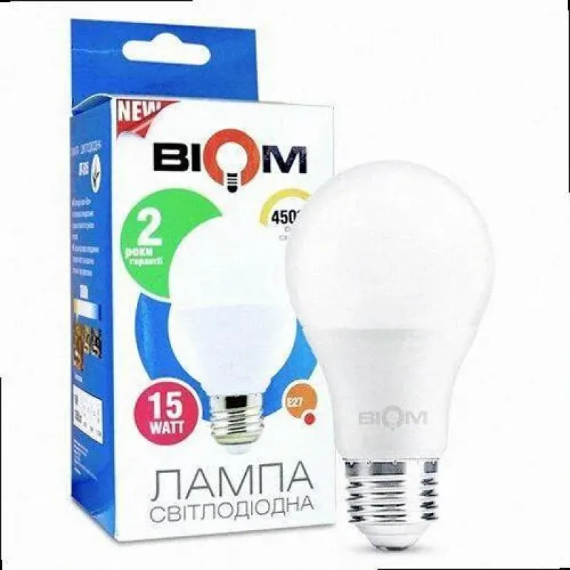 Світлодіодна лампа економ енергозберігаюча Biom BT-516 15W A65 E27 4500K