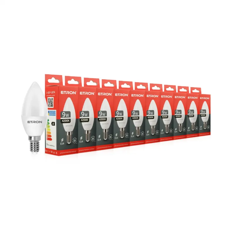 Комплект із 10 світлодіодних ламп ETRON C37 9W 4200K E14 – ефективне та довговічне освітлення для вашого дому та офісу