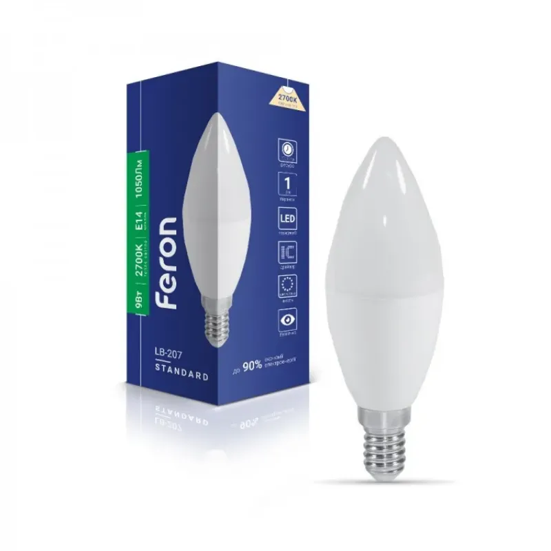 Світлодіодна лампа Feron LB-207 9Вт E14 2700K StandardКлючові переваги та особливості:
