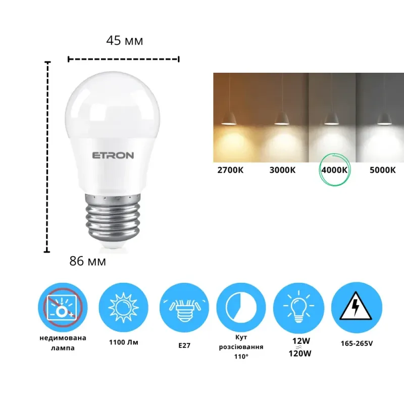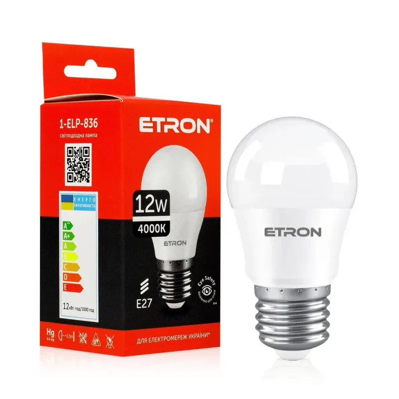Світлодіодна лампа ETRON 12W 4000K E27 G45 — це сучасне рішення для яскравого, приємного і стабільного освітлення, яке поєднує комфорт і енергозбереження.