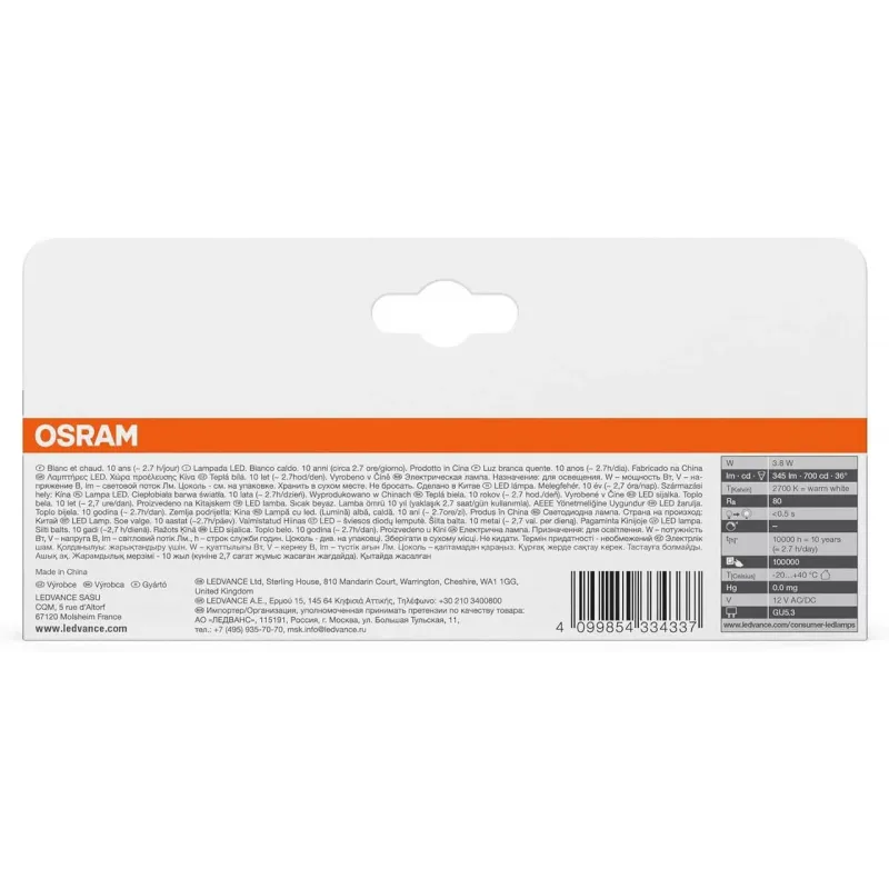 Світлодіодна лампа OSRAM MR16 GU5.3 Advantage тепле біле світло 2700K 3,8 Вт матове скло комплект 5 шт