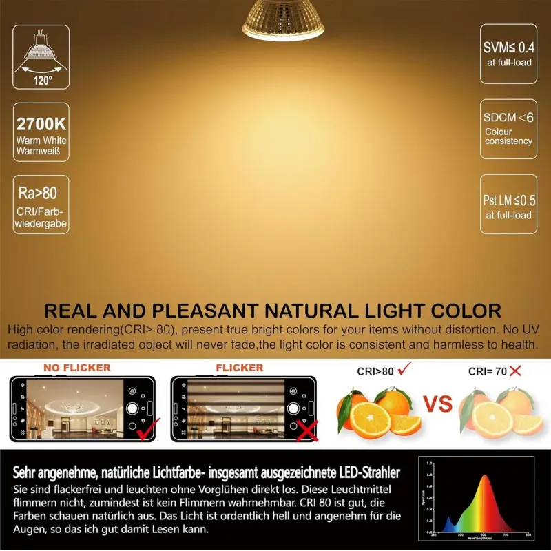 Лампа є енергоефективною заміною галогенних ламп 35 Вт, споживаючи лише 3,8 Вт, що дозволяє суттєво зменшити витрати електроенергії. Комплект із 5 ламп оптимально підходить для точкових світильників у стелях та меблях, де важлива стабільна якість освітлення та довгий ресурс роботи.