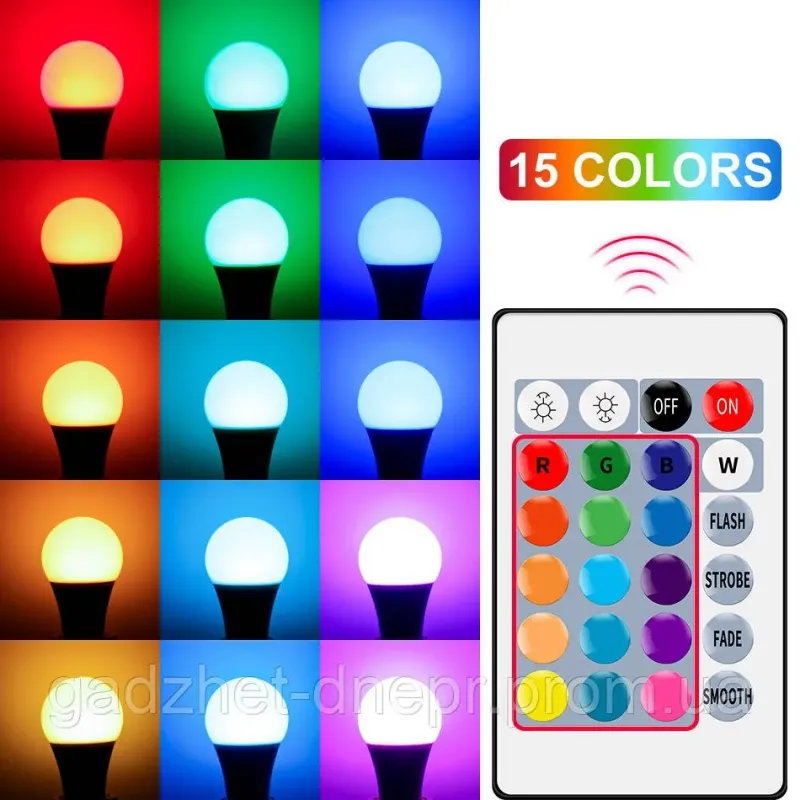 🛒 Шукаєте надійний товар? Ви можете купити Світлодіодна лампа з пультом ДУ. E27 LED RGB 5Вт , 15 кольорів в нашому інтернет-магазині Shtyrman. Гарантія якості та швидка доставка по всій Україні!