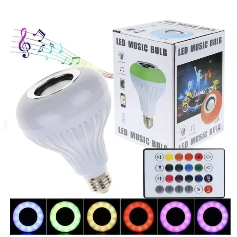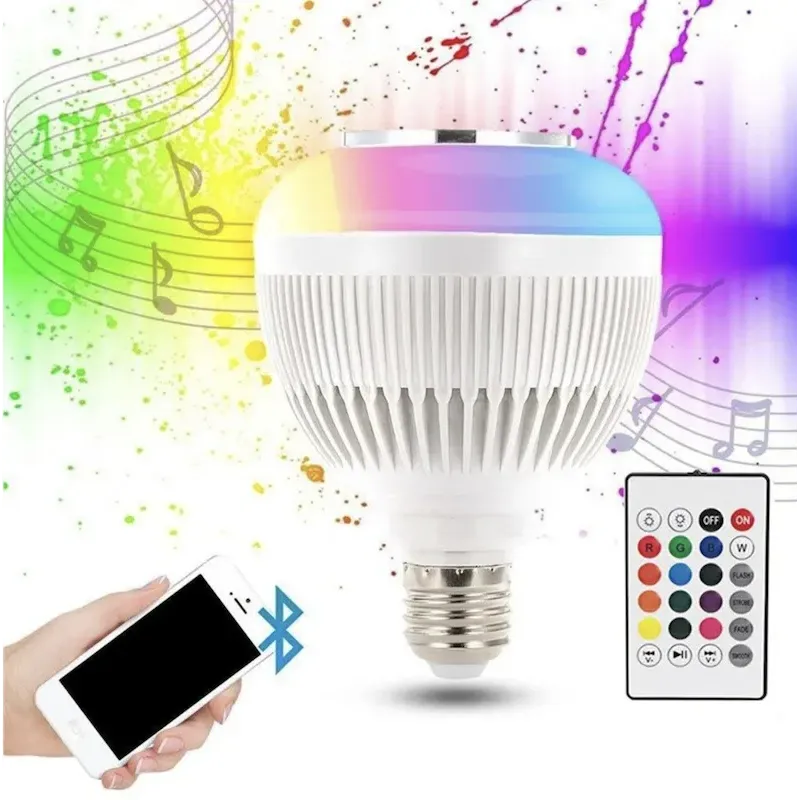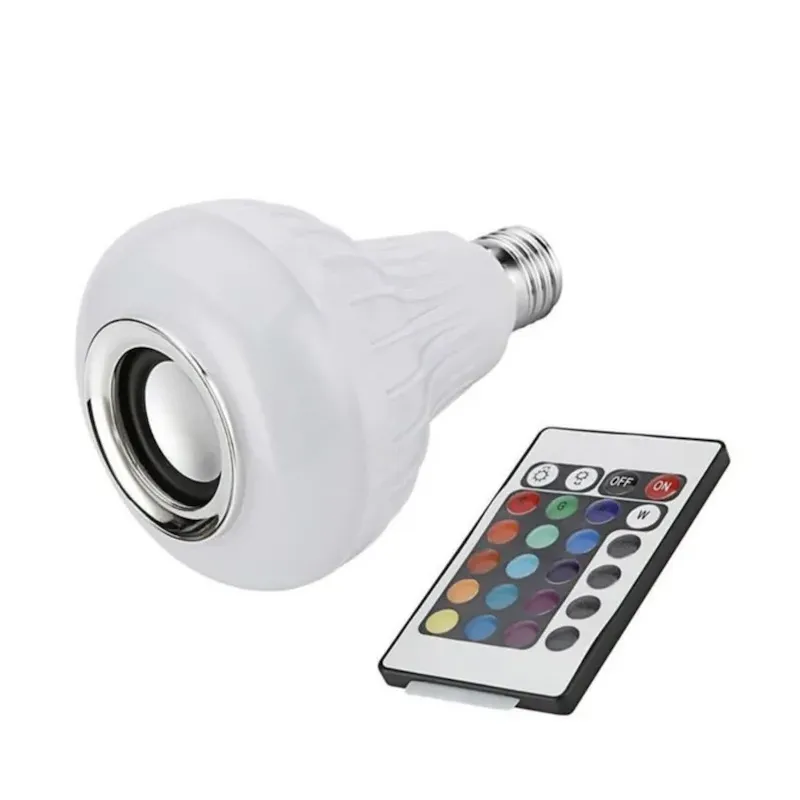 Світлодіодна лампа RGB з динаміком E27 з вбудованим динаміком Bluetooth це чудовий музично-освітлювальний пристрій, що поєднує в собі можливість вибирати за настроєм колір освітлення в кімнаті та слухати музику з мобільних пристроїв бездротового зв'язку, причому, як одночасно, так і окремо.