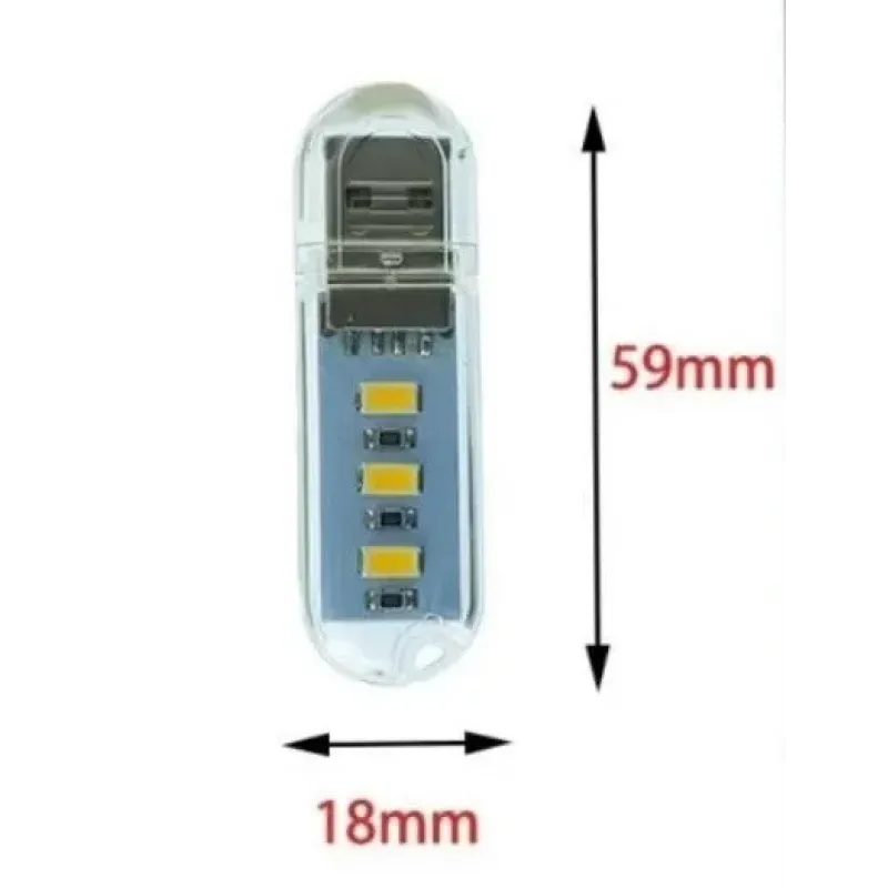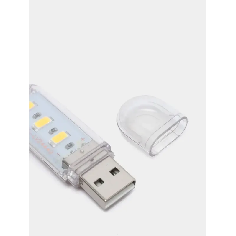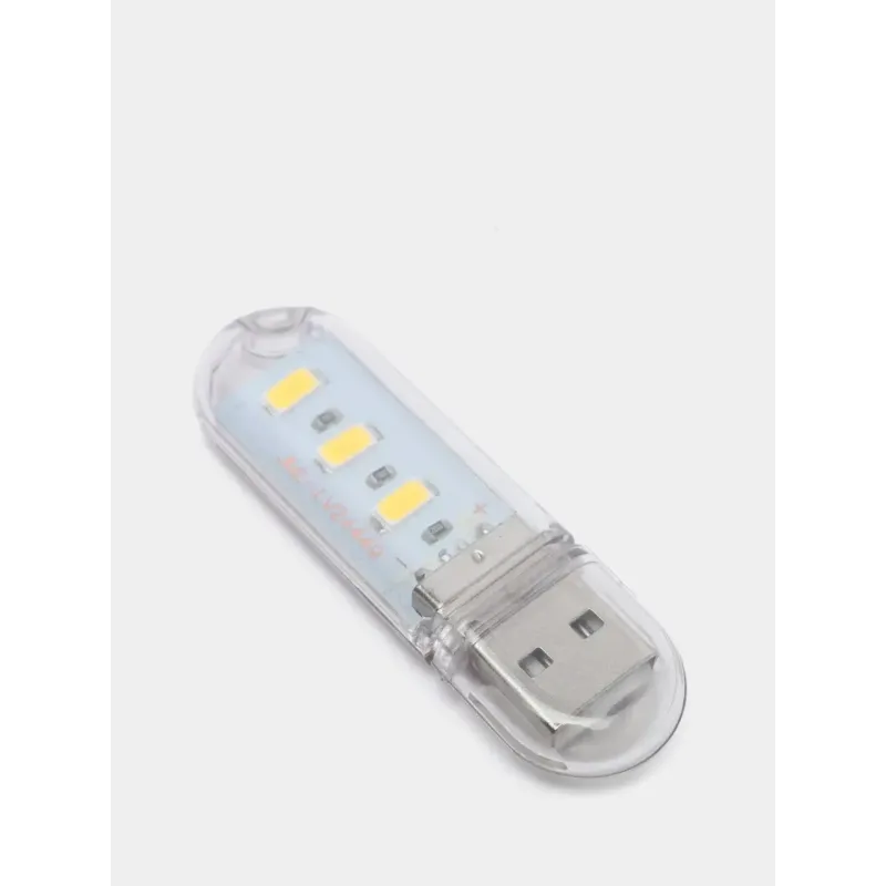 Лампа USB  — це невеликий, портативний, ультраяскравий світлодіодний ліхтарик-брелок, що живиться від USB-порту у формі класичної флешкарти пам'яті. Сумісність з усіма стандартами USB, працює від будь-яких пристроїв з USB-портом: таких, як ноутбук, ПК, портативна батарея тощо. Холодне яскраве ультрабіле світло. Споживана потужність лампи становить 1-4 Вт, що практично не буде впливати на споживання енергії. Світловий потік 150-200 Лм дає можливість добре освітити клавіатуру ноутбука, екран планшета, екран електронної книги тощо. Блок підсвітки складається зі світлодіодів 5730.