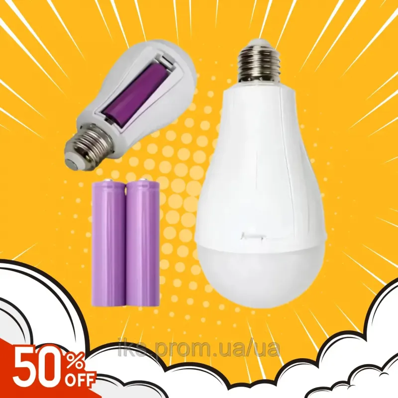 Світлодіодна лампочка з акумулятором 20 Вт Аварійне освітлення приміщень під час вимкнення світла Лампа акб, ефективнаСвітлодіодна лампочка 20 Вт + 2 акумулятори