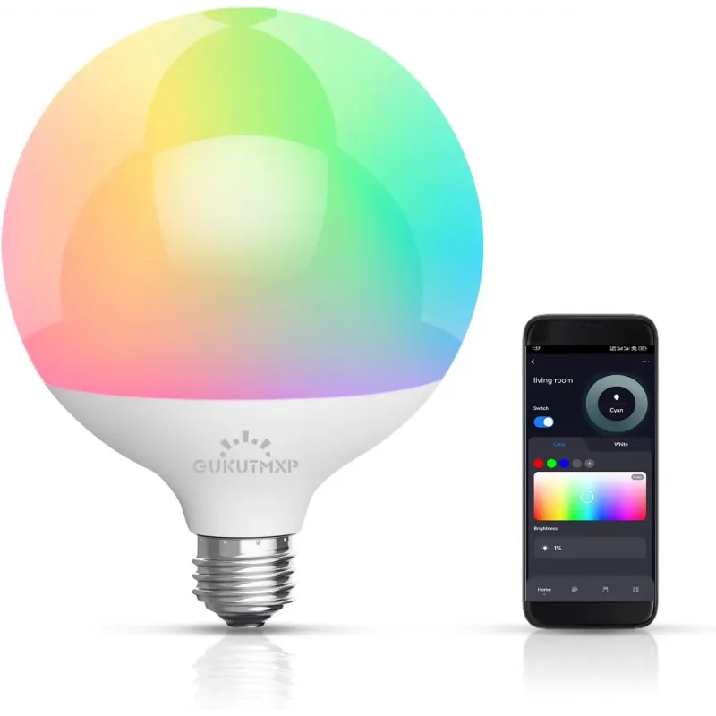 Світлодіодна LED RGB - це світлодіодна лампа, яка використовується для освітлення приміщення та створення яскравої святкової ілюмінації. У комплект входить пульт дистанційного керування для зміни кольору освітлення та перемикання режимів роботи лампи. У лампу вбудовані світлодіоди різних кольорів, які можна вмикати окремо або разом при необхідності створити освітлення, так само є біле світло звичайної лампи. У будь-якому режимі свічення, крім кольору, можна змінювати яскравість, що значно економить витрати на електроенергію. Розумна лампа LED RGB має стандартний цоколь і може використовуватись замість звичайної лампи.