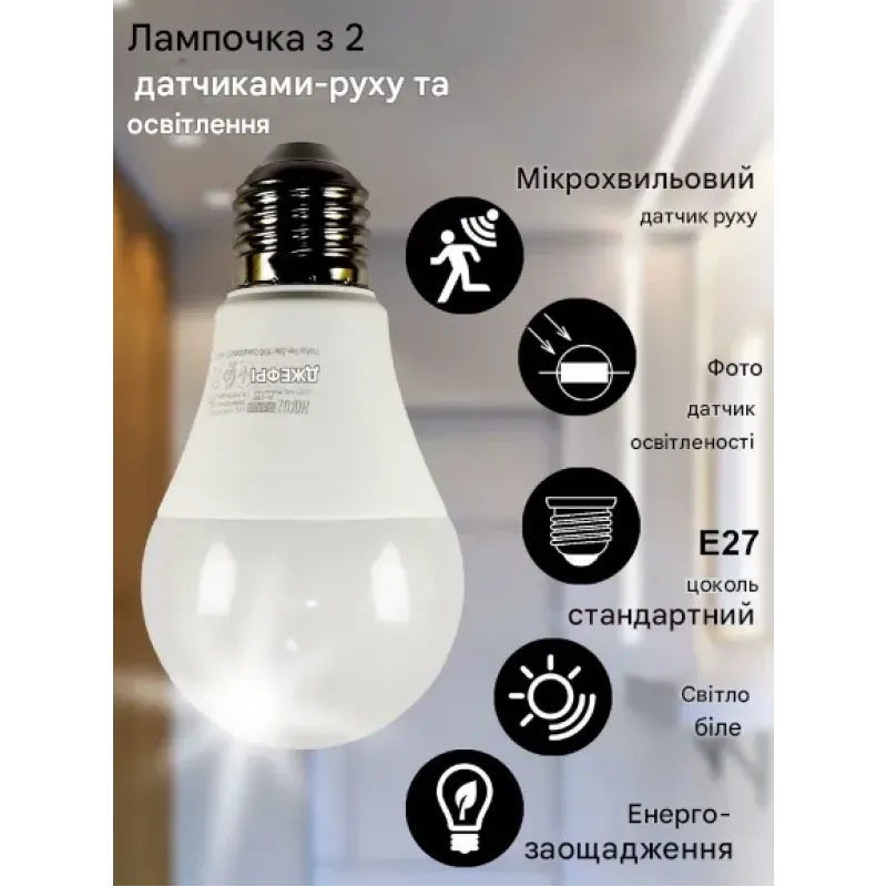 Тип лампи: Світлодіодна розумна лампа з датчиком руху та освітленості.