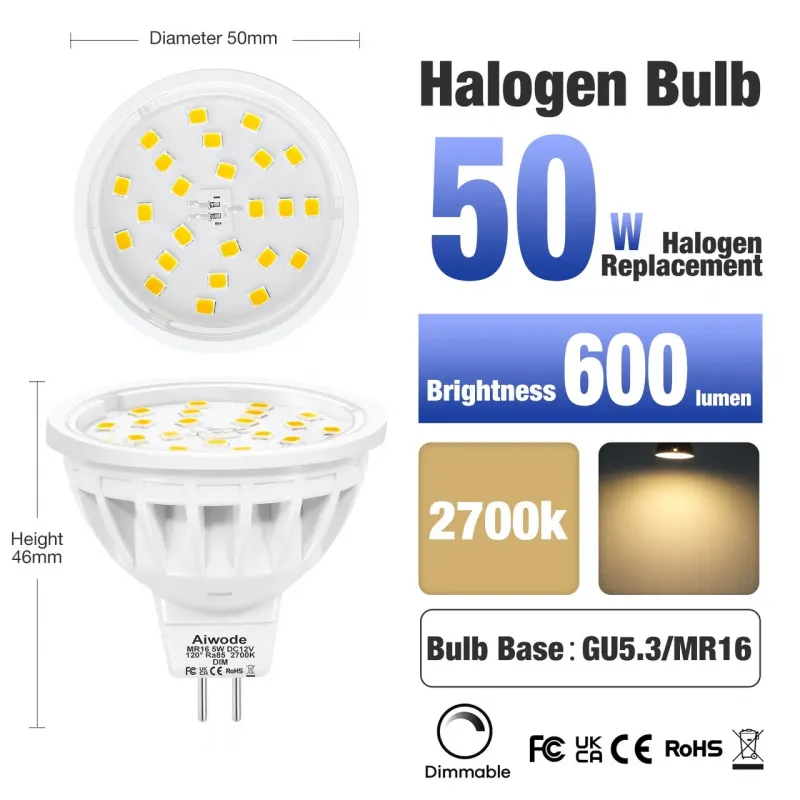 Світлодіодні лампи Aiwode GU5.3 MR16, 50 Вт Галогенна лампа Новий, пошкоджене паковання