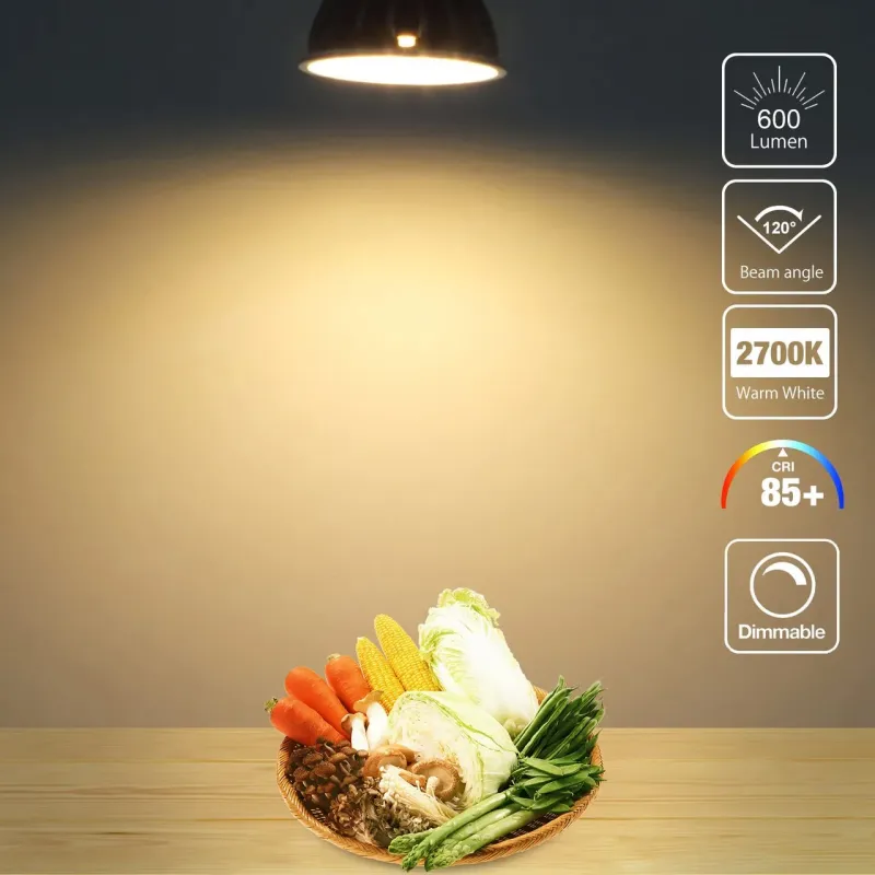 6 шт., паковання та 6 світлодіодних ламп із димуванням 5 Вт GU5.3 MR16, теплоізоляція білий світлодільний протор 2700k 600LM GU5.3 MR16; Економія 90% енергії, кут променя 120°. Сучасна технологія зміни, діапазон зміни від 10% до 100%, DC12V.
