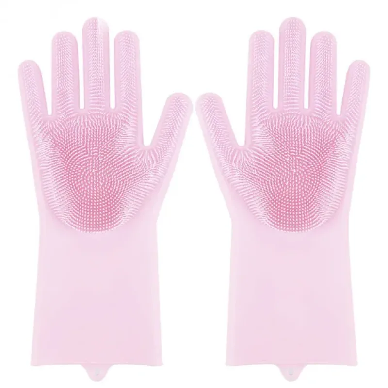 Силиконовые перчатки Magic Silicone Gloves Pink для уборки чистки мытья посуды для дома. Цвет: розовый