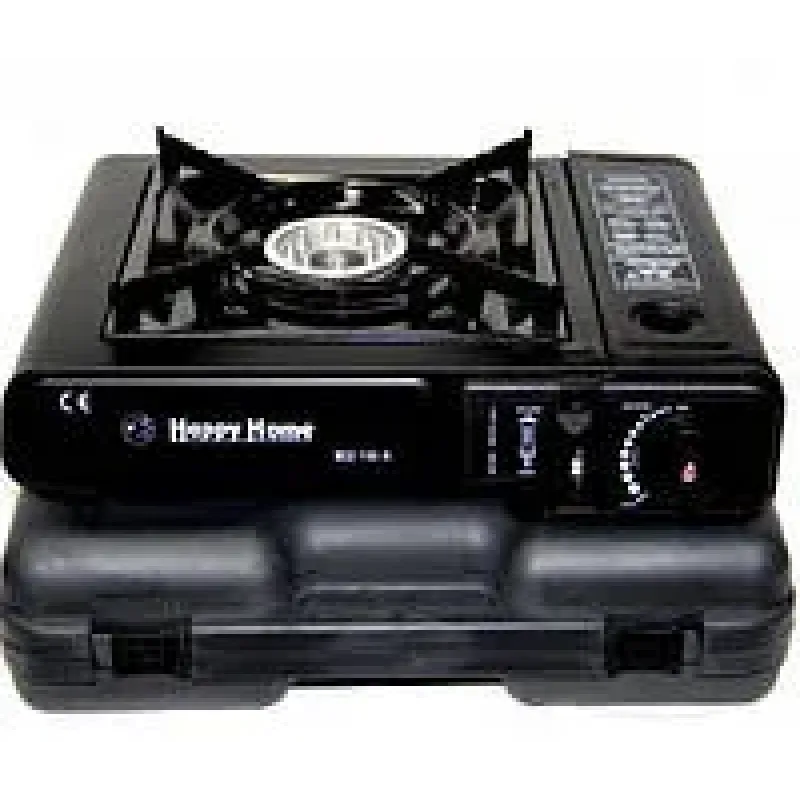 Газова плита з вітрозахисту під цанговий балон і перехідником (адаптером) для підключення побутових балонів. Класична модель одноконфорочної портативної плитки. Завдяки зручності використання та демократичній ціні, вона є найпопулярнішою моделлю. Багато людей, які зіткнулися з відключенням електрики, і ті, хто просто любить подорожувати з комфортом, завжди мають на дачі або в машині портативну плитку і запас газових балонів. Плита надійна, невибаглива та гранично проста у використанні. Має автоматичний п’єзопідпал. Працює від цангового газового балона 220 грам, який міститься всередині плити та комплектується перехідником для підключення побутових балонів. При роботі від побутового балона використовується редуктор з механічним (ручним) регулюванням.