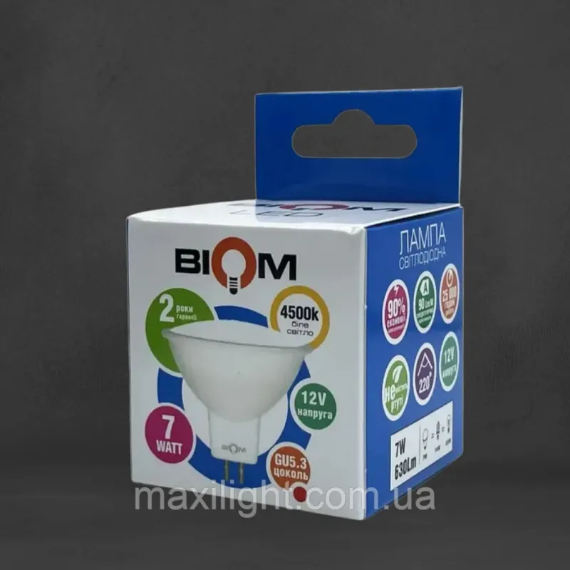 🛒 Шукаєте надійний товар? Ви можете купити Точкова Світлодіодна Лампа BIOM MR16 7W 12V цоколь GU5.3 4500К нейтральний білий в нашому інтернет-магазині Shtyrman. Гарантія якості та швидка доставка по всій Україні!