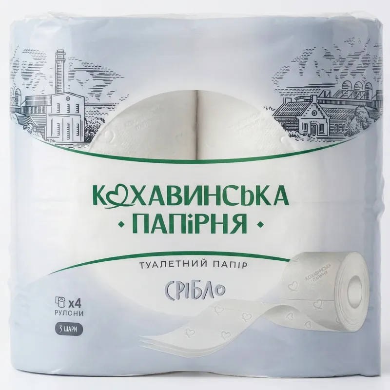 Туалетний папір Кохавинська папірня Срібло 3 шари (4 шт)
