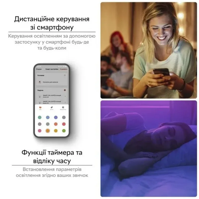 • Таймери та Сценарії: Налаштовуйте розклад і створюйте унікальні світлові сценарії.