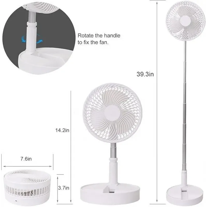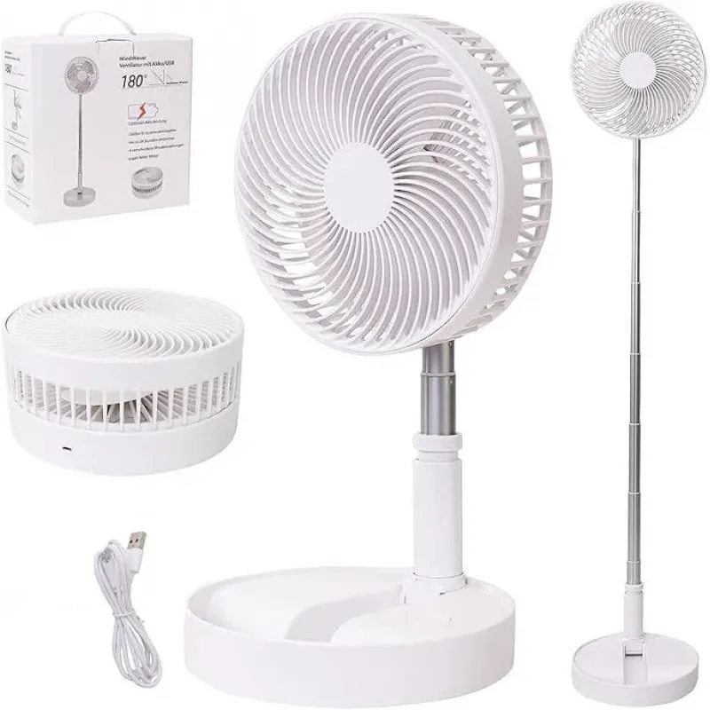 Вентилятор акумуляторний складаний телескопічний (USB зарядка) — Портативний настільний та підлоговий вентилятор 2в1 Білий