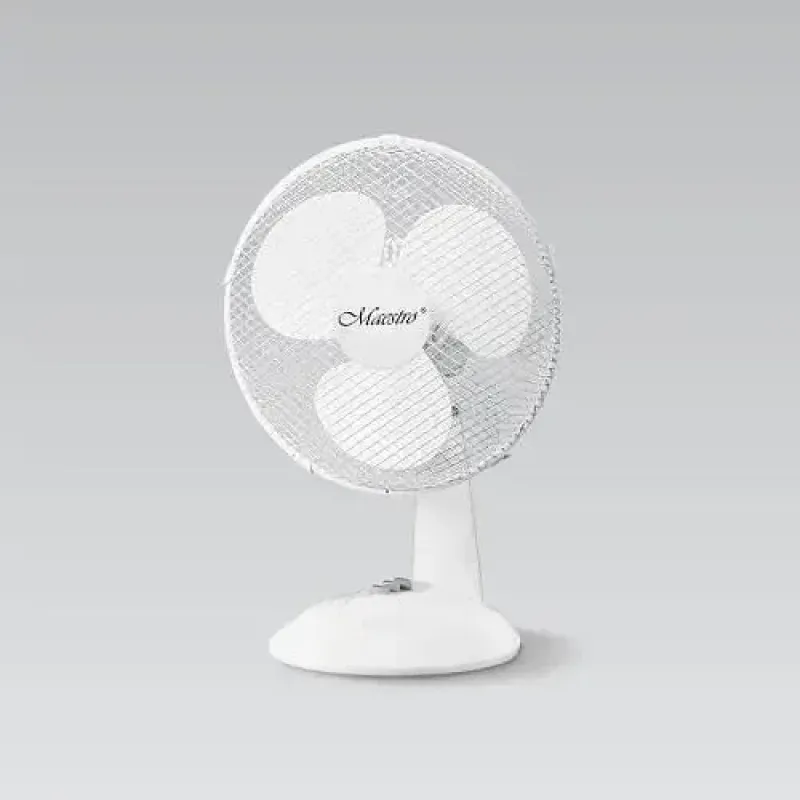 Опис Настільний вентилятор Maestro MR-903 має приємний лаконічний дизайн, виконаний у білому кольорі, він простий та зручний в експлуатації та не потребує багато місця для встановлення. Регулювати потоки повітря у приміщенні дозволять 30 см лопаті та наявність практичних функцій, таких як автоповорот на 90 градусів та можливість регулювання кута нахилу вентилятора для направлення повітря у певному напрямку. Передбачена можливість вибору з трьох швидкісних режимів, завдяки чому користувач може вибрати максимально комфортні умови роботи приладу. Ще однією перевагою Maestro MR 904 є наявність двосторонньої захисної сітки «GRID», що надійно захищає лопаті вентилятора від контакту з предметами та людьми. Характеристики Тип вентилятора: настільний Потужність, Вт: 50 Кількість швидкостей: 3 Регулювання кута нахилу: так Висота, см: 50 Діаметр, см: 30 Колір білий Особливості Автоповорот Корпус, що обертається на 90° Регулювання кута нахилу Характеристики Максимальна потужність 60 Вт Вт Вт Живлення Від мережі Кількість швидкостей 3 Тип настільний підлоговий Діаметр 22 см