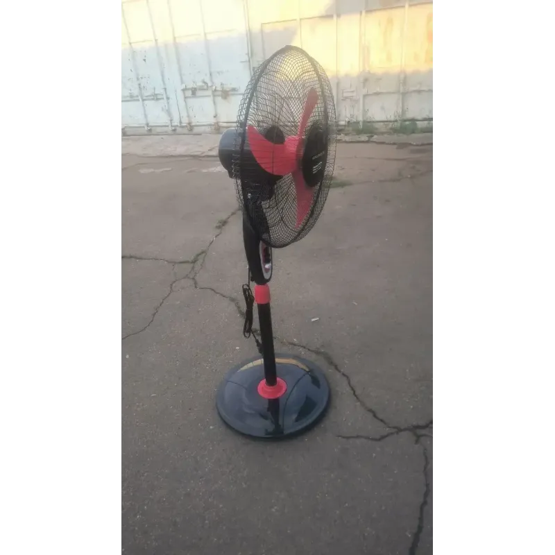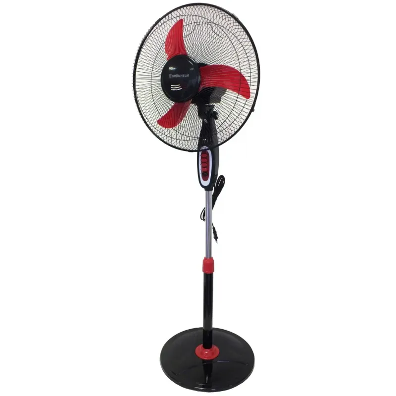 Вентилятор підлоговий Grünhelm (Чорний з червоним), потужний 3-швидкісний, регульований, на круглій підставці