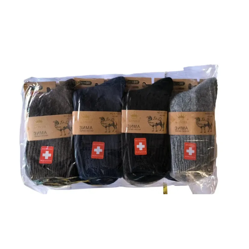 Чоловічі шкарпетки з верблюжої вовни Інформація, вказана на бирці: Термошкарпетки для спорту, туризму та активного відпочинку з верблюжої вовни з антибактеріальними і термопідтримувальними властивостями розмір 42-48 Склад 70% верблюжа вовна 20% бамбук 5% поліамід 5% еластан