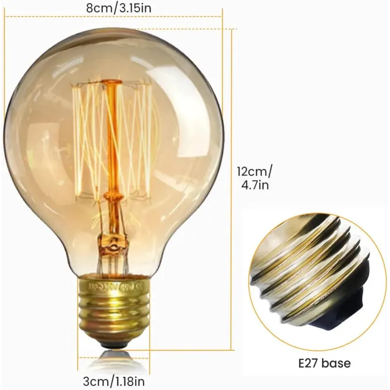 - Характеристики] Розмір лампи Едісона: 12*8 см/4,7*3,15 дюйма, змінний струм 220 В, 40 Вт, 120 лм, ретролампа 2300 К, гвинтова основа E27 забезпечує міцнішу фіксацію лампи.