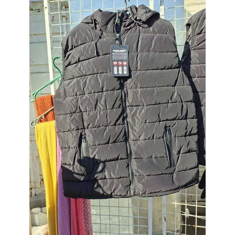 Стильна та практична чоловіча жилетка — ідеальний вибір для мінливої погоди міжсезоння. Ця модель поєднує в собі комфорт, тепло та сучасний дизайн. Виготовлена з якісної плащової тканини, яка захищає від вітру та невеликого дощу, а легкий утеплювач чудово зберігає тепло тіла. Безрукавка оснащена глибоким капюшоном, що стане надійним захистом від поривів вітру. Зручні кишені на блискавці дозволяють безпечно зберігати телефон, ключі чи гаманець. Завдяки вільному крою та відсутності рукавів, жилетка не сковує рухів, що робить її чудовим варіантом для водіїв, активного відпочинку чи повсякденного носіння. Характеристики: Тип виробу: Жилетка / Безрукавка Сезон: Весна / Осінь (Демісезон) Колір: Чорний Матеріал верху: Плащівка (поліестер) Застібка: Блискавка Особливості: З капюшоном, кишені на блискавці Розміри в наявності: 52, 54, 56, 58, 60