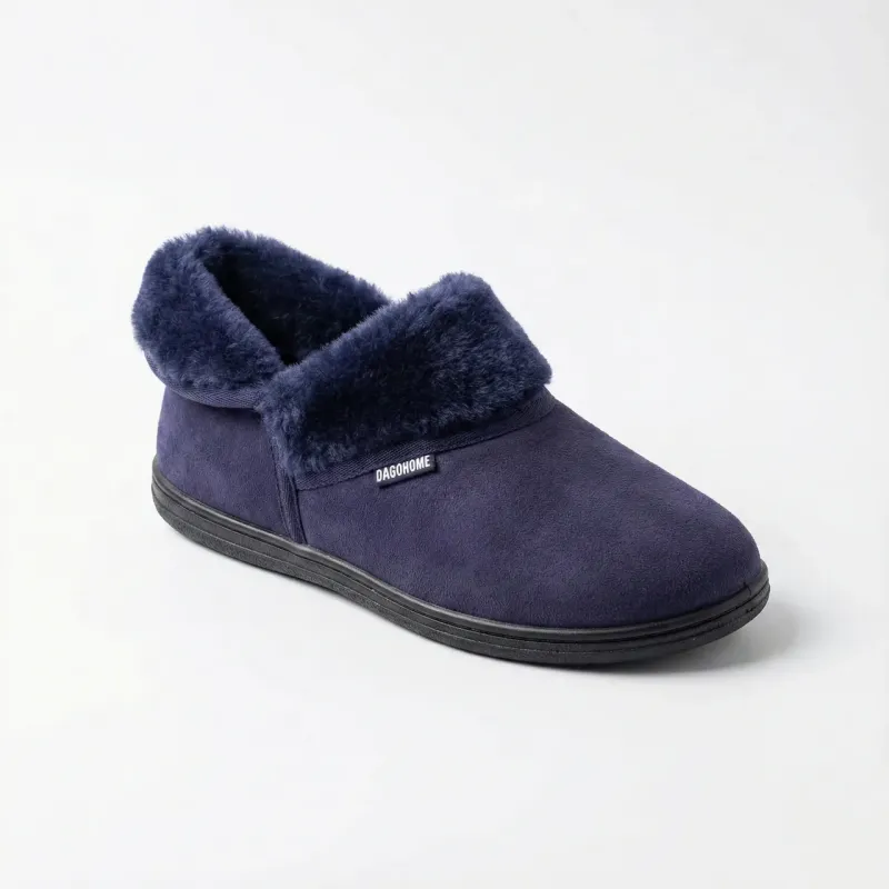 Подаруйте своїм ногам максимальний комфорт та тепло з домашніми капцями-чобітками від бренду Dagohome. Ця модель типу "чуні" створена для тих, хто мерзне в звичайних шльопанцях. Високий бортик надійно охоплює кісточку, зберігаючи дорогоцінне тепло всередині взуття. Верх виконаний з м'якого, приємного на дотик текстилю, що імітує замшу, у практичному темно-синьому кольорі. Всередині капці повністю утеплені густим та пухнастим штучним хутром в тон виробу. Воно створює ефект "сухого тепла", дозволяючи ногам розслабитися та зігрітися за лічені хвилини. Підошва виготовлена з гнучкого поліуретану/ПВХ і додатково прошита міцною ниткою, що значно подовжує термін служби взуття та гарантує, що воно не розклеїться. Ці стильні кімнатні чобітки стануть чудовим подарунком для себе або близьких. Вони легкі, не обтяжують ногу і виглядають дуже акуратно. Логотип "DAGOHOME" збоку підкреслює фабричну якість виробу. Характеристики: Виробник: Dagohome (Україна) Тип: Чуні / Домашні чобітки Матеріал верху: Текстиль (під замшу) Матеріал підкладки: Густе штучне хутро Підошва: Прошита, нековзна Колір: Темно-синій (Navy) Розміри: 36-41