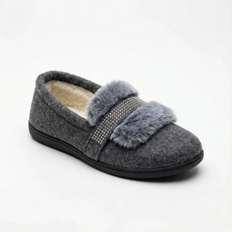 🛒 Шукаєте надійний товар? Ви можете купити Жіночі домашні капці мокасини сірі повстяні на хутрі зі стразами (36-41) 37 в нашому інтернет-магазині Shtyrman. Гарантія якості та швидка доставка по всій Україні!