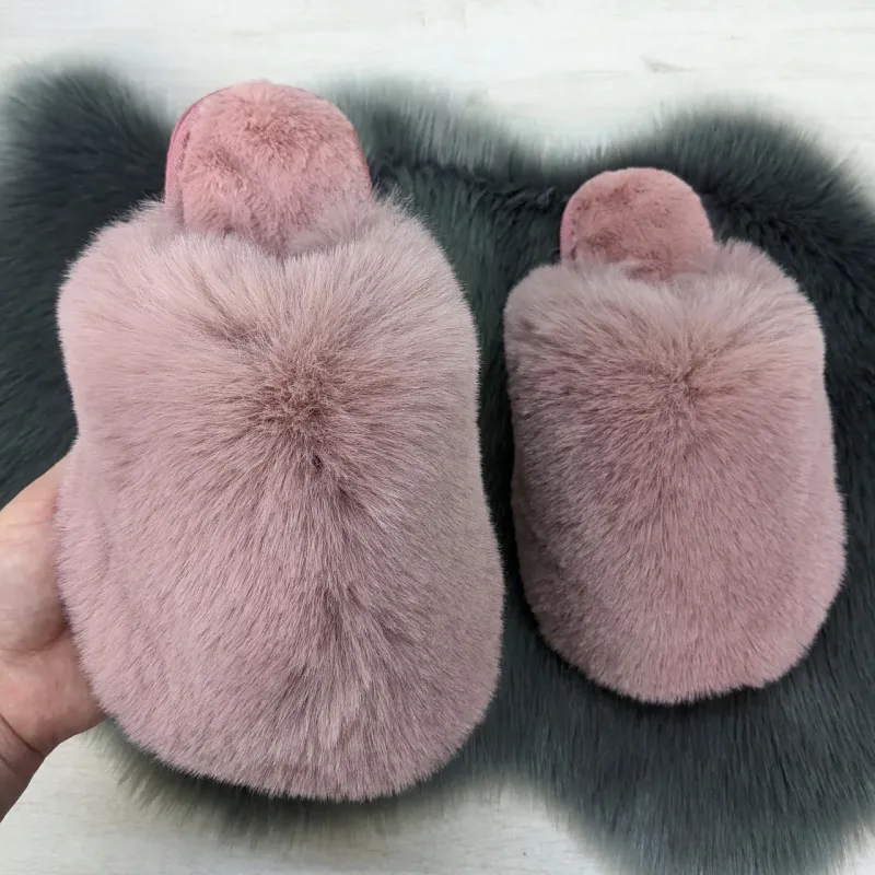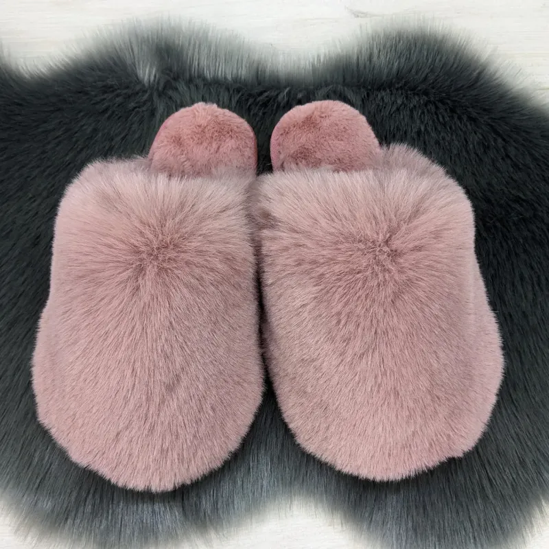 Жіночі домашні капці Пухнастики з еко-хутра Пудрові