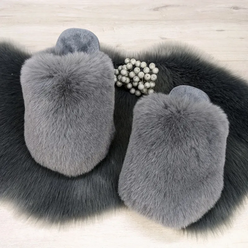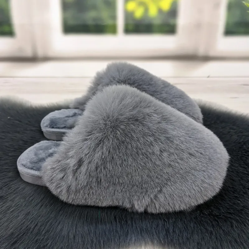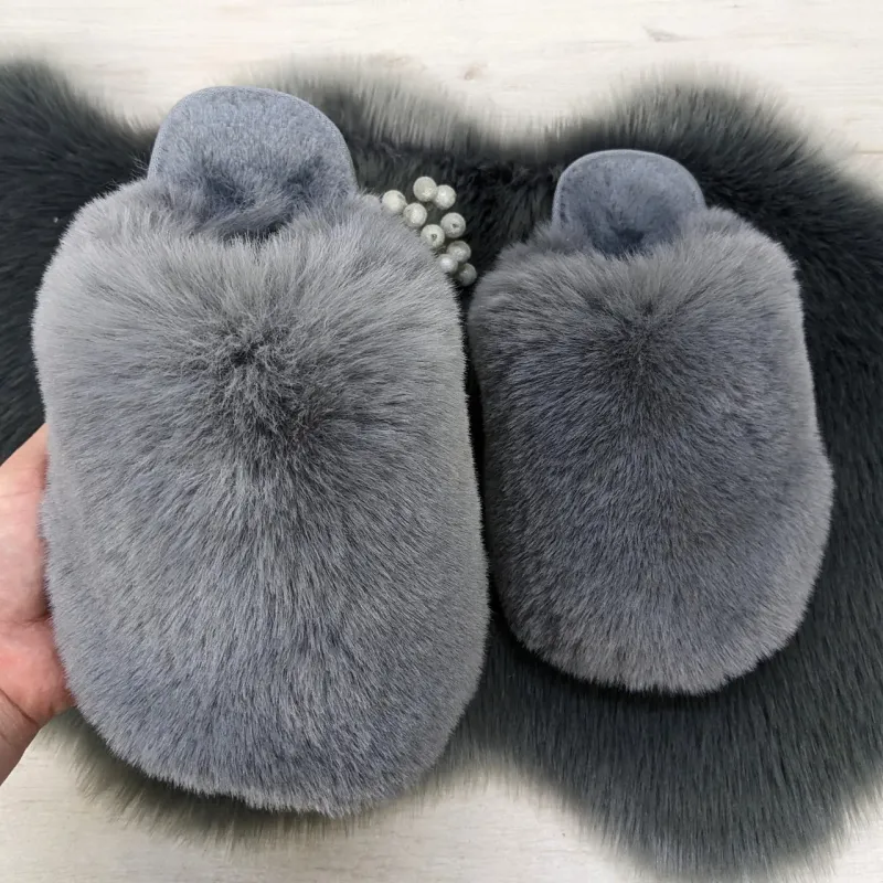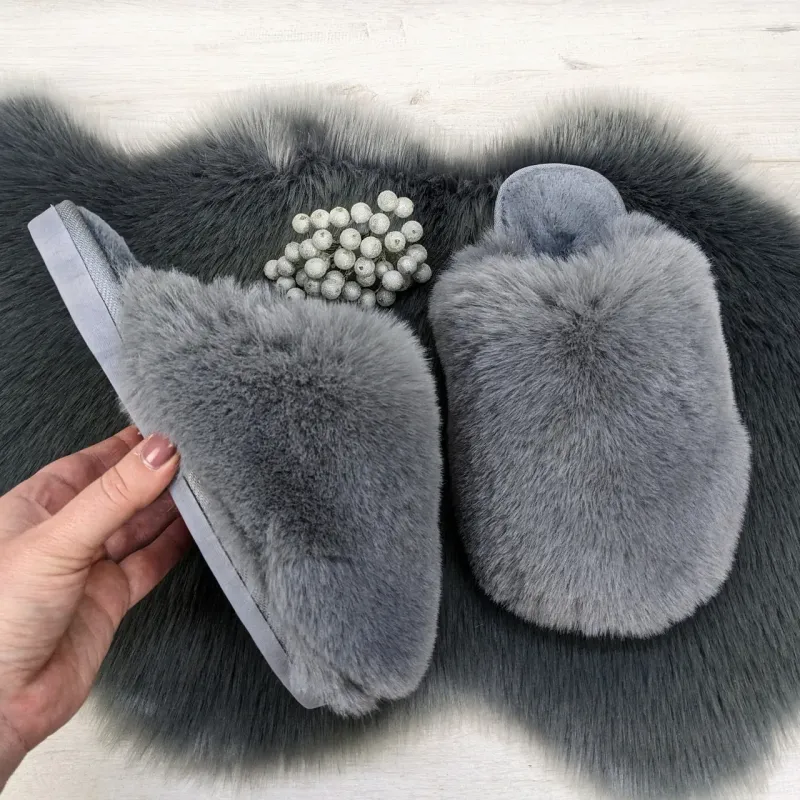 Жіночі домашні капці Пухнастики з еко-хутра сірі