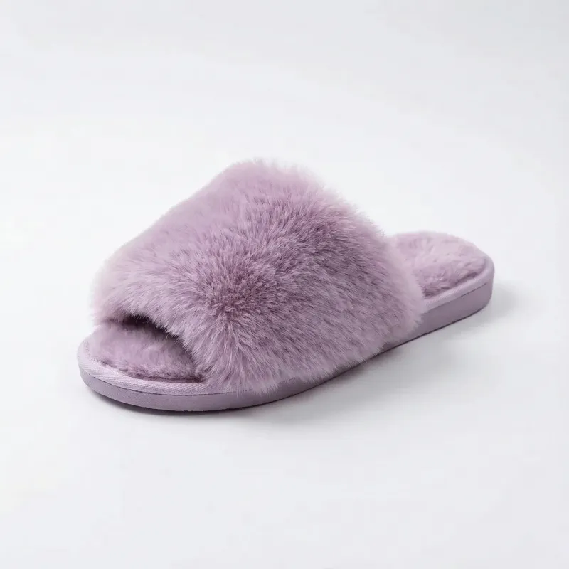 Жіночі домашні капці пухнасті хутряні бузкові (лаванда) відкриті м'які (36-41) 40