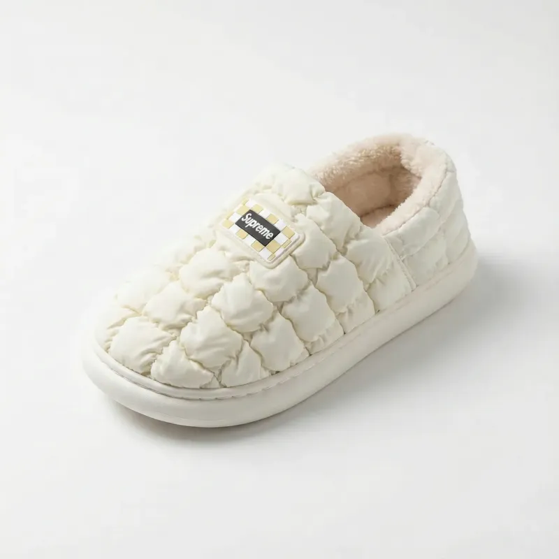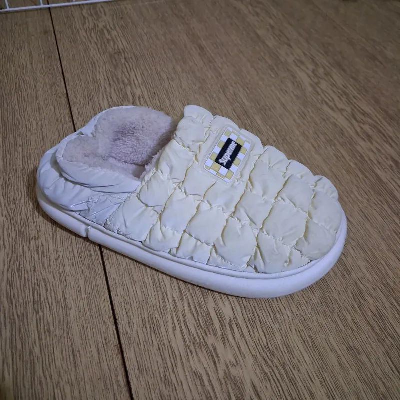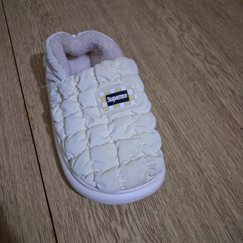 Зустрічайте тренд цього сезону — неймовірно стильні та теплі дуті капці "Superme". Ця модель поєднує в собі сучасний дизайн з ефектом "пуховика" та максимальний комфорт. Вони стануть вашим улюбленим домашнім взуттям у холодну пору року, даруючи ногам тепло та затишок. Верх виготовлений з міцного матеріалу (плащівка), який не лише стильно виглядає, але й легко протирається від забруднень. Всередині тапочки утеплені густим та м'яким еко-хутром, що огортає ногу немов хмаринка. Гнучка підошва забезпечує комфорт при ходьбі та не ковзає по підлозі. Завдяки закритому верху тепло надійно зберігається всередині. Ці білі стьобані капці — ідеальний варіант для тих, хто слідкує за модою навіть вдома. Вони також стануть чудовим та практичним подарунком для близької людини. Характеристики: Тип взуття: Домашні капці / Шльопанці Сезон: Зима / Осінь / Весна Матеріал верху: Текстиль (плащівка, стьобана) Матеріал підкладки: Тепле штучне хутро Підошва: ПВХ / Гума (гнучка, не ковзає) Особливості: Напис "Superme", ефект дутого пуховика Колір: Білий (Молочний) Розміри: 36-41 Країна виробник: Китай