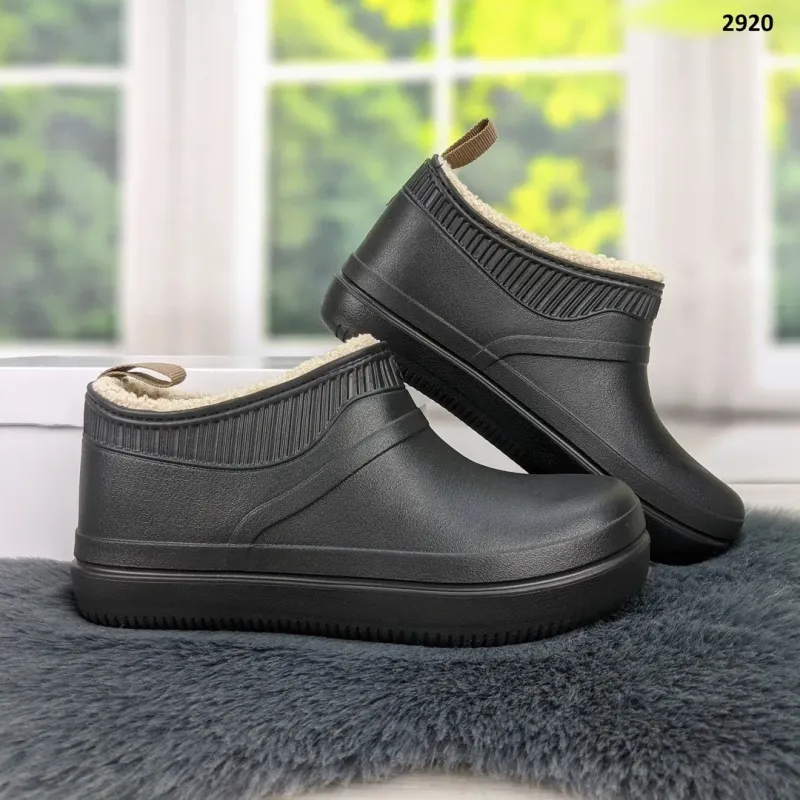 Забудьте про мокрі ноги та важке гумове взуття! Жіночі галоші від Dago Style — це нове покоління комфорту для вологої погоди. Виготовлені з сучасного матеріалу EVA (піна), вони неймовірно легкі та повністю водонепроникні. Переваги цієї моделі: Тепло: Всередині галоші утеплені густим світлим еко-хутром (під овчину), яке надійно зберігає тепло навіть при мінусовій температурі. Легкість: Матеріал піна практично невагомий на нозі, тому ноги не втомлюються навіть після тривалої ходьби. Дизайн: Акуратний чорний колір та стильна імітація "гумки" у верхній частині роблять їх схожими на модні черевики-челсі. Практичність: Лита підошва не пропускає воду. Ідеально підходять для приватного сектору, прогулянок з собакою, роботи в саду або походів у магазин у дощ та сніг. Ззаду є зручна петелька для легкого взування. Характеристики: Виробник: Dago Style (Україна) Розміри: 37, 38, 39, 40, 41 Колір: Чорний Матеріал: Піна (EVA) Утеплювач: Штучне хутро (незнімне) Сезон: Осінь / Зима / Весна