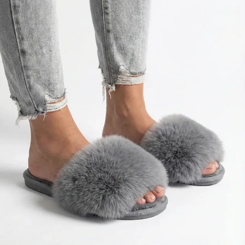 Жіночі капці з пушком Сірі (36-41) Пухнасті шльопанці хутряні для дому та вулиці 39