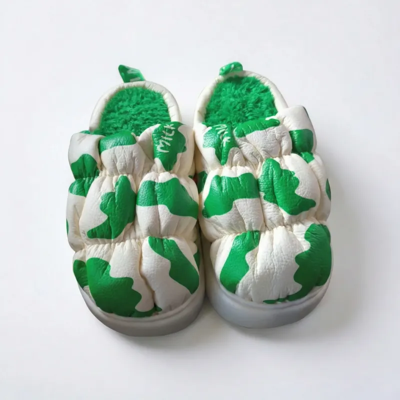 Жіночі кімнатні капці теплі дуті закриті принт корова зелені Milk