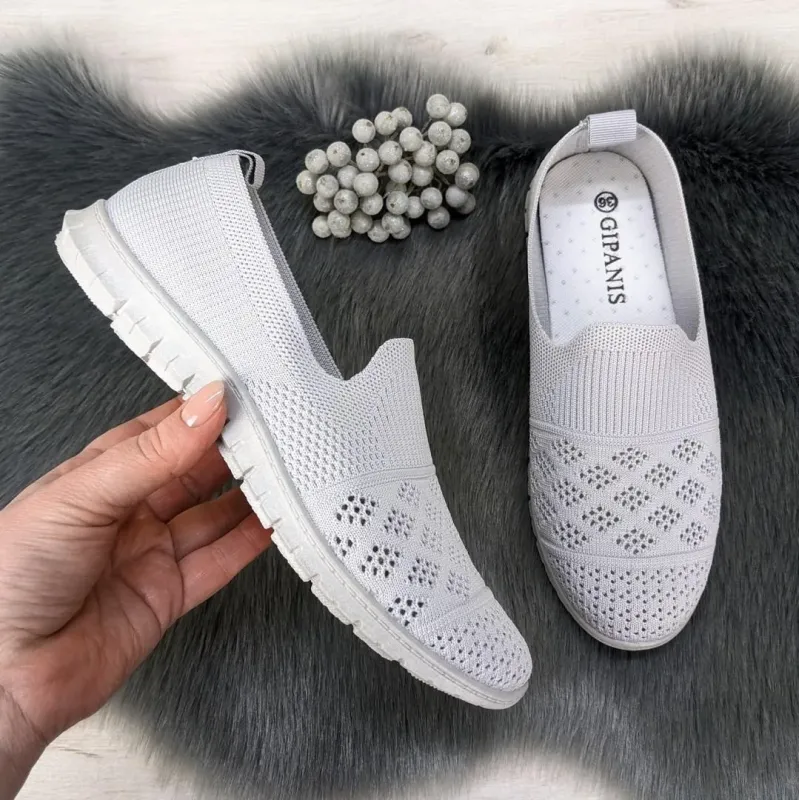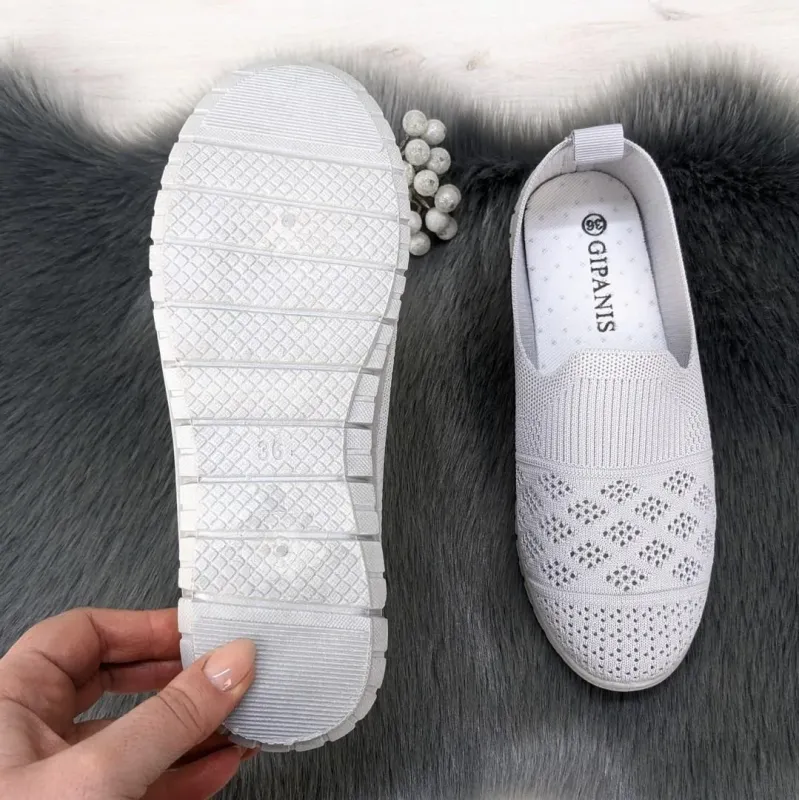 Ці білі текстильні сліпони від бренду Gipanis — це кохання з першого кроку. Вони поєднують у собі неймовірну легкість, стиль та комфорт, який так необхідний у спекотний сезон. Верх виконаний з якісного дихаючого текстилю (в'язана сітка) з красивим візерунком, що забезпечує ідеальну вентиляцію стопи. Світлий, майже білий колір робить цю пару універсальною: вона пасуватиме і до романтичної сукні, і до улюблених джинсів. Анатомічно правильна форма та м'яка підошва гарантують, що ваші ніжки не втомляться навіть після довгих прогулянок. Відсутність шнурків дозволяє взуватися миттєво — просто всунули ніжку і пішли підкорювати світ! Характеристики: Бренд: Gipanis. Тип: Мокасини / Сліпони. Сезон: Літо / Тепла весна. Колір: Білий / Світло-сірий (White/Light Grey). Матеріал верху: Текстиль (сітка). Розмірний ряд: 37, 38, 39, 40, 41.